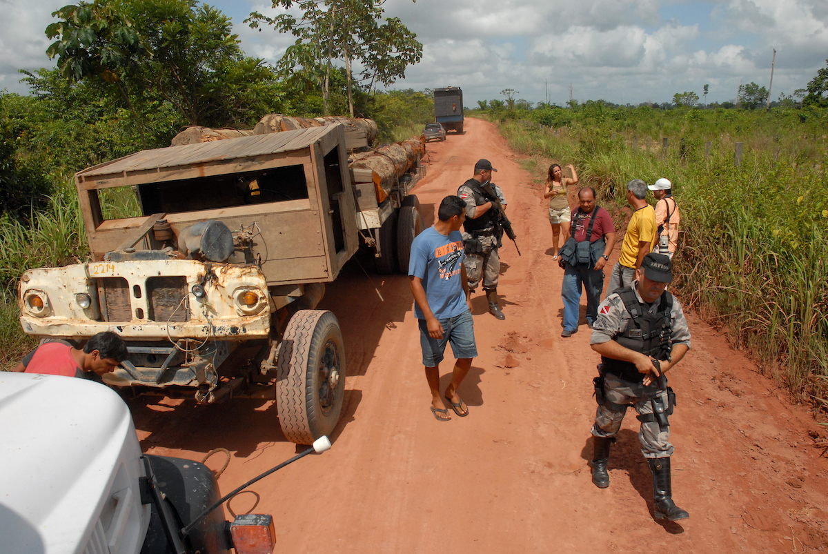 Policiais militares investigam caminhão abandonado. Caminhão carregado de madeira é abandonado na viscinal 18 após perder o pneu durante o transporte.