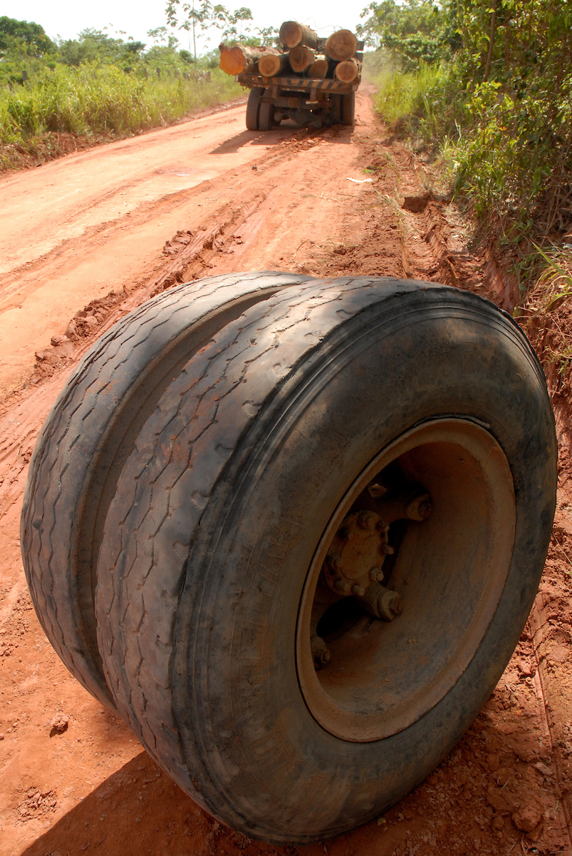 Policiais militares investigam caminhão abandonado. Caminhão carregado de madeira é abandonado na viscinal 18 após perder o pneu durante o transporte.