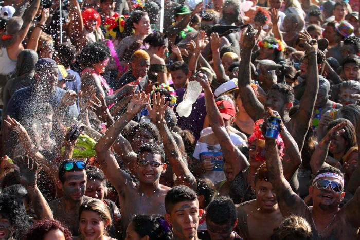 O tradicional bloco Pretinhos do Mangue, que usa como fantasia a lama dos manguezais de Curuçá, no nordeste do estado, desfilou neste domingo pelas ruas do município. A brincadeira ocorre há 26 anos e, com isso, tenta transmitir uma mensagem de preservação ambiental. O bloco volta às a partir das 17h desta segunda-feira .