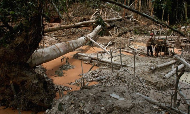 No meio da mata garimpeiros continuam a cavar em busca de ouro na grota Rica. Milhares de garimpeiros se encontram espalhados pela regi„o do Garimpo em busca de novas jazidas. O garimpo descoberto em Novo Aripuan„, no sul do Amazonas no igarapÈ da Preciosa, um afluente do rio Juma (a 70 km da cidade de ApuÌ) vai crescendo com dezenas de buracos abertos sob a selva.