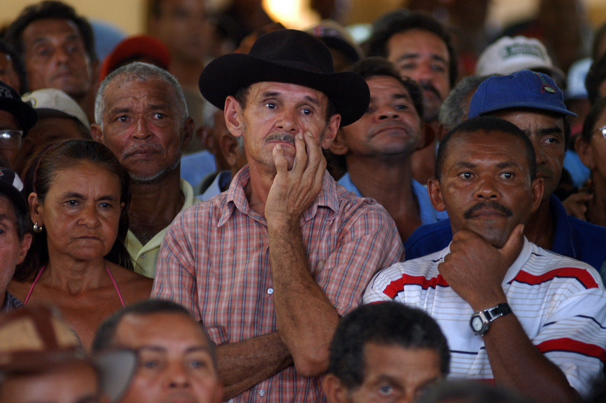 Garimpeiros durante assembléia para a unifição da Cooperativa de MineraÁo dos Garimpeiros de Serra Pelada – Comigasp e do Sindicato dos Garimpeiros de Serra Pelada – Singasp, as divergÍncias entre as duas entidades causou v·rias mortes nos ?ltimos anos. A assemblÈia que unificou a categoria derrubara o ?ltimo entrave para liberaÁo pelo governo federal de nova exploraÁo da serra .18/12/2005CurionÛpolis, Par·, Brasil.Foto Paulo Santos/Interfoto