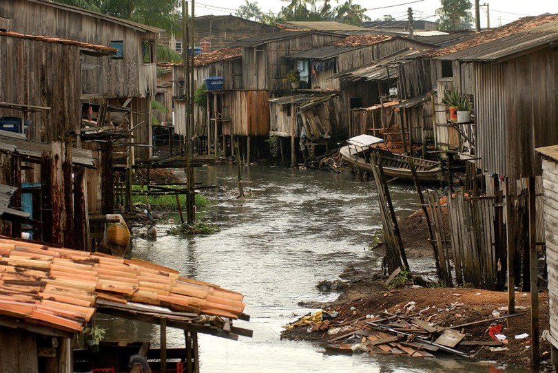 Centenas de palafitas ao redor do igarapÈ do Tucunduba abrigam milhares de famÌlias sem condiÁıes mÌnimas de saneamento esgoto ou ·gua pot·vel. o igarapÈ que È usado para transporte de produtos atÈ o centro da cidade est· completamente poluÌdo.