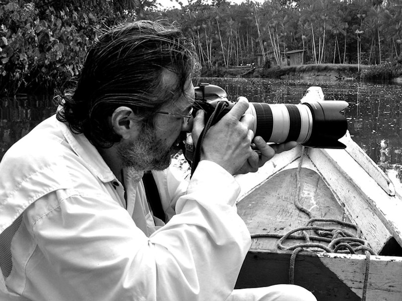 Paulo Santos fotografa o rio Aurá.