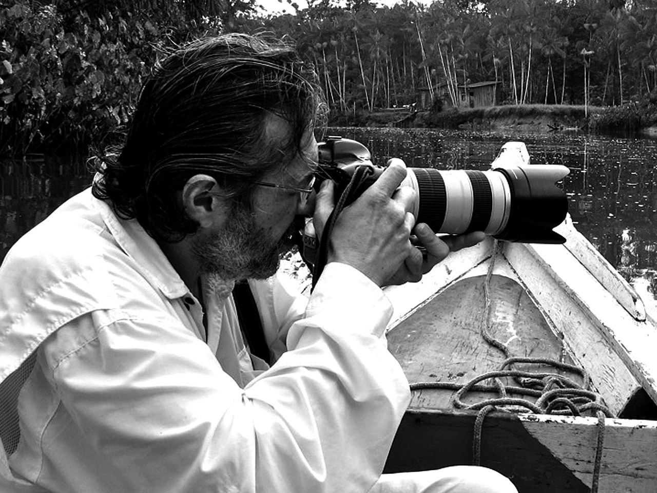 Paulo Santos fotografa o rio Aurá.