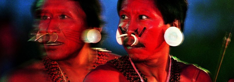 Índios Mathis ,do vale do Javarí no Amazonas, se preparam para demostração da zarabatana, uma das principais técnicas usadas para caçar durante os jogos indígenas de Marapanim no Pará.