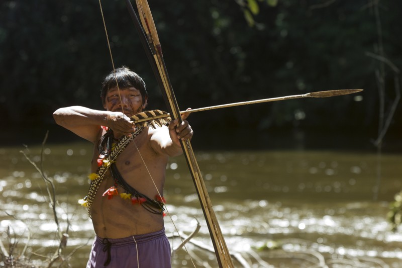 Índios Cinta Larga,brinca de atirar flexas em alvo na reserva Roosevelt ao sul do estado de Rondônia logo após encontro com jornalistas no posto onça pintada montado pela Funai e polícia ambiental dentro da reserva quando foi confirmado por um de seus líderes de nome Pio Cinta Larga de que não existem mais corpos de garimpeiros mortos na reserva ocorrida durante chacina contra garimpeiros que invadem suas terras há vários anos. Os índios fizeram questão de frisar a defesa de suas terras.