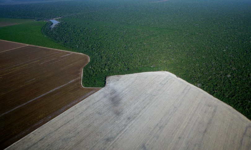 Grandes plantaÁıes de soja, milho e algod„o cercam o Parque IndÌgena do Xingu (PIX) .