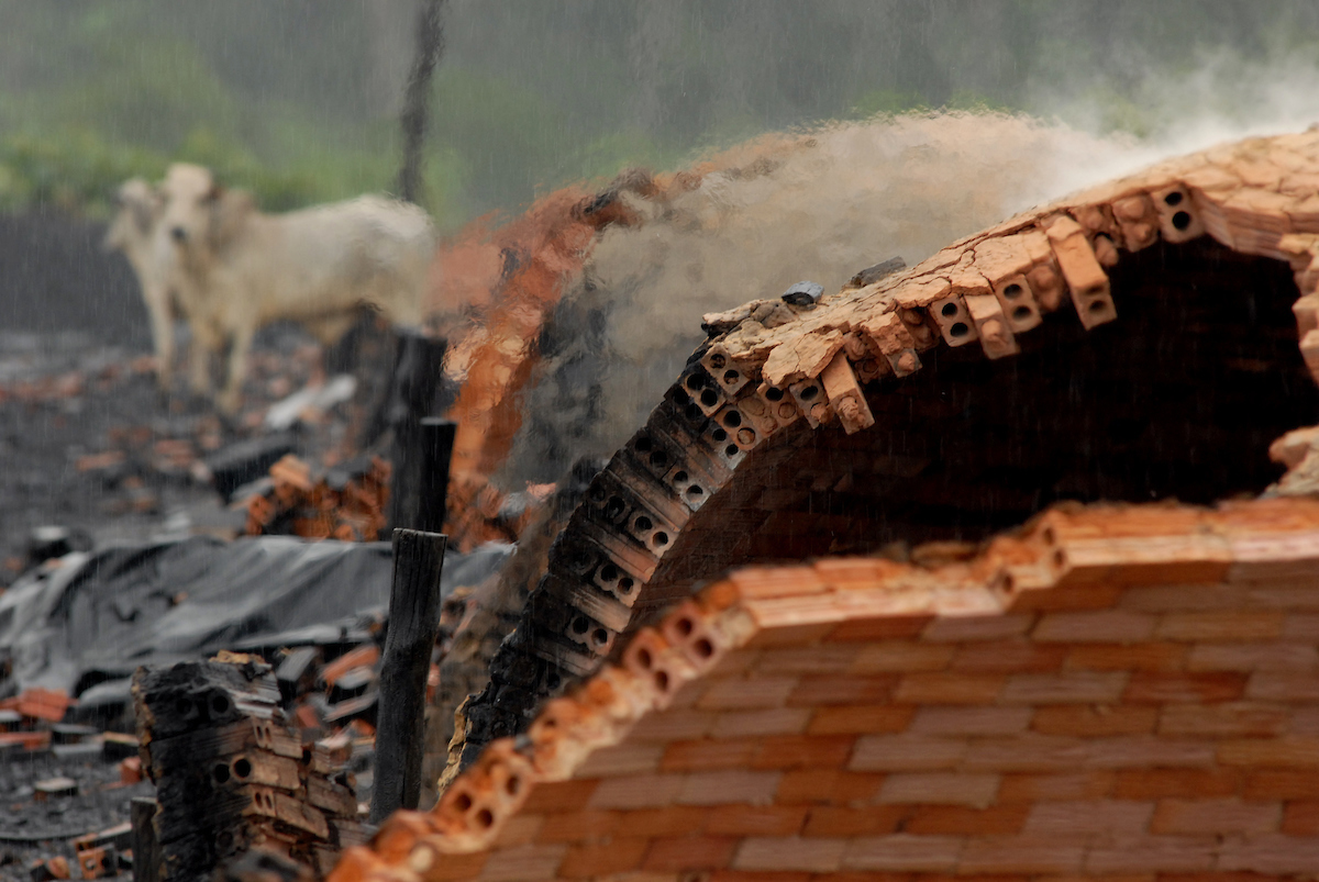Policiais militares atravessam carvoaria derrubada durante operação iniciada na última segunda feira as 7:30 horas da manhã nos arredores de Tailândia(sul do Pará), cerca de 120 homens com 30 viaturas, da Polícia Militar do estado do Pará, polícia civil e agentes do Ibama participam da operação. Já foram apreendidas cerca de 10.000 mts cúbicos de espécimes diversas como Jatobá, Mata mata e angelim com 4 prisões. Até agora seis serrarias uma carvoaria e uma mineradora(areia) já foram autuadas.