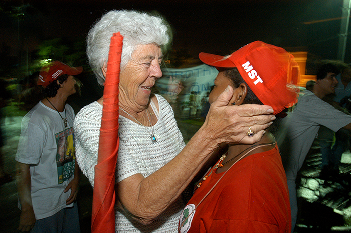 Mary, irmã de Dorothy comemora a condenação de Tato e abraça militante do MST.