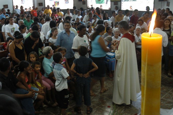 D. Erwin Krautler bispo de Altamira reza missa pelo pirimeiro ano do assassinato de irmã Dorothy na paróquuia de santa Luzia.