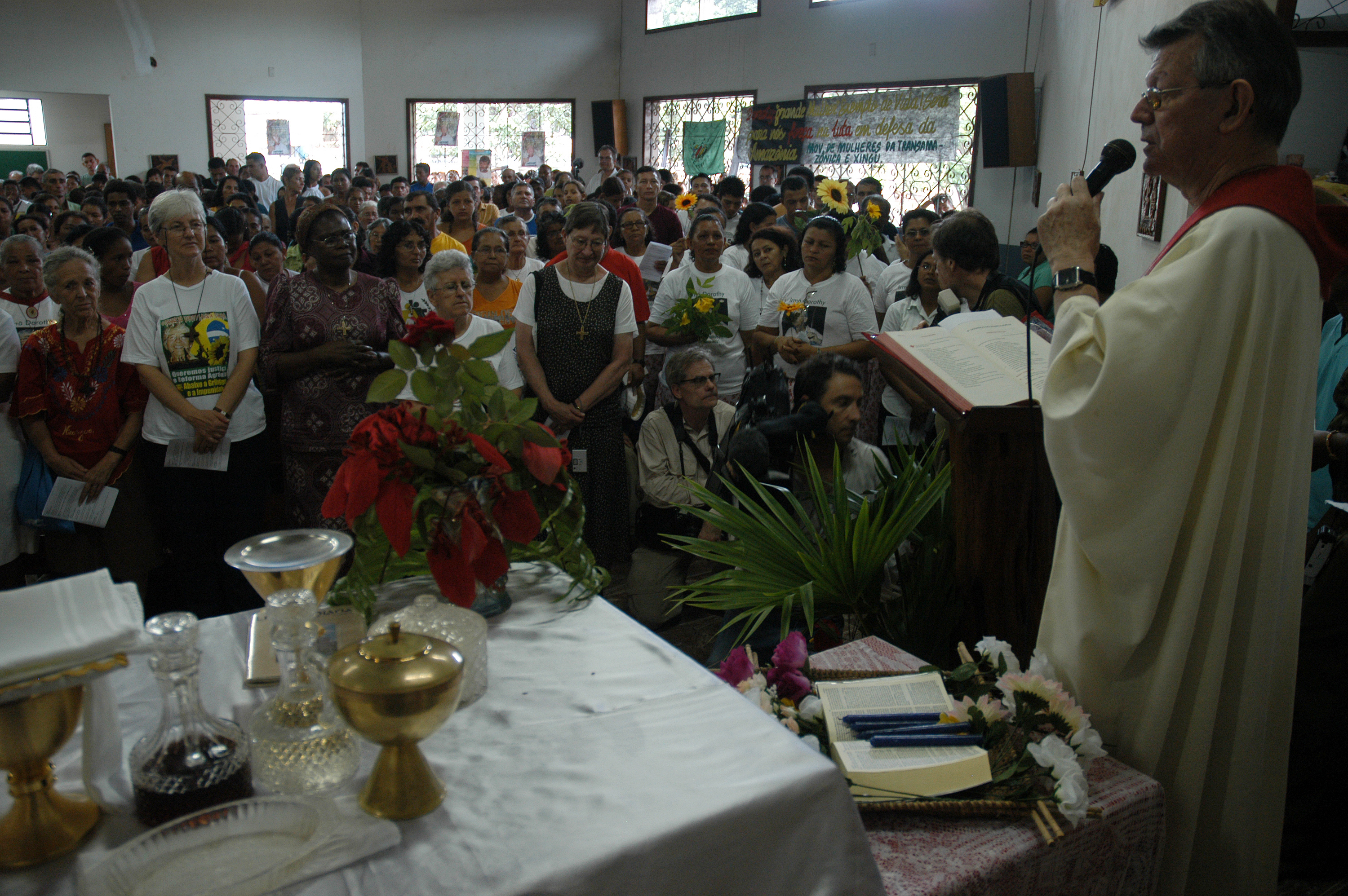 D. Erwin Krautler bispo de Altamira reza missa pelo pirimeiro ano do assassinato de irmã Dorothy na paróquuia de santa Luzia.